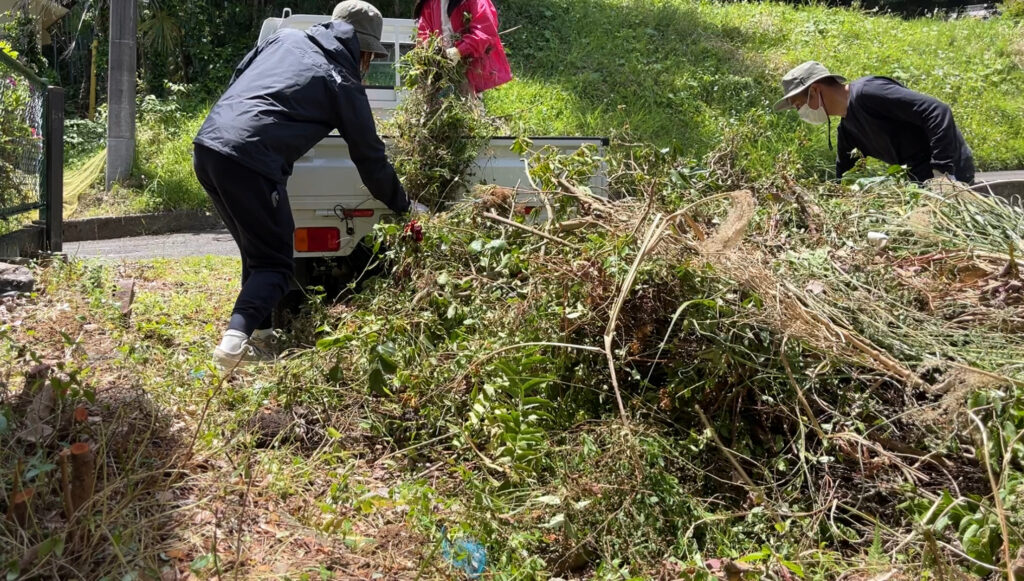 - 伐採した木や草の運搬:家族全員で軽トラックに草を積み込み、街のリサイクルセンターで処分。処分費用は合計1800円。(軽トラ1台分)